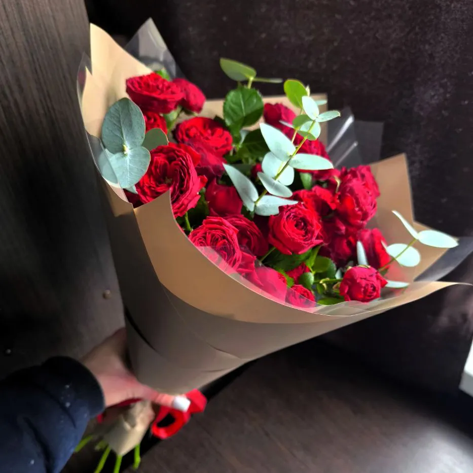 Букет из красных пионовидных роз – это воплощение романтики и глубоких чувств. Каждый цветок в этом букете, словно нежное признание в любви, раскрывает свои бархатистые лепестки, наполняя воздух сладким ароматом. Красный цвет символизирует страсть и нежность, а пионовидные розы, с их объемной формой и роскошной текстурой, создают атмосферу немного сказочную, словно вы променяли время на мгновение счастья.