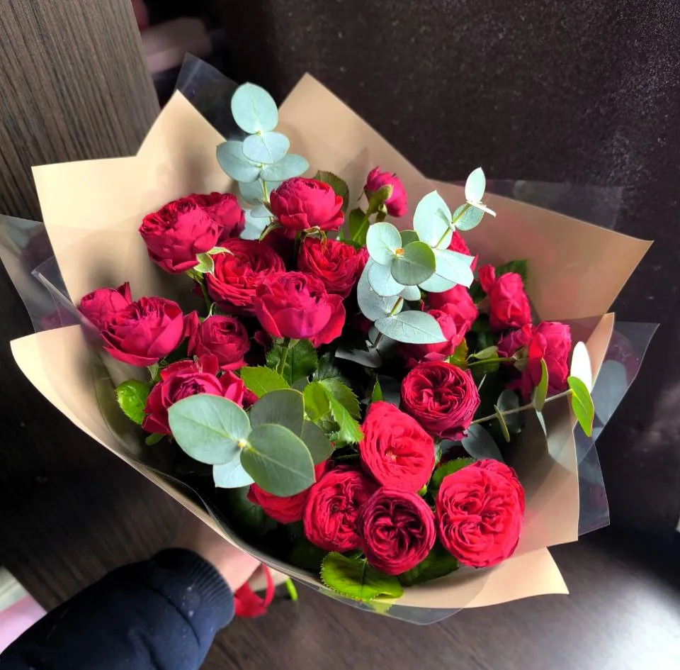 Букет из красных пионовидных роз – это воплощение романтики и глубоких чувств.