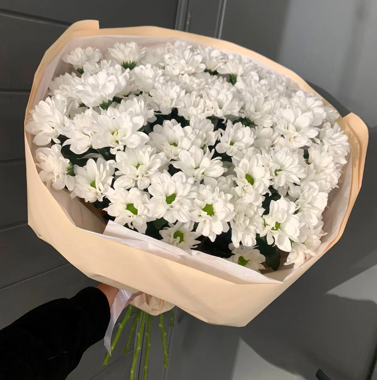 Кустовые хризантемы,упаковка,лента