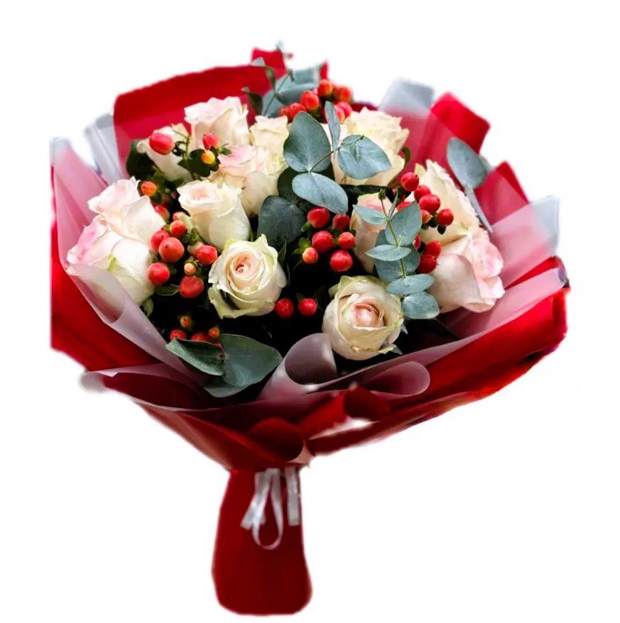 Закажите букет из белых роз и гиперикума, чтобы сделать этот день особенным и запоминающимся!