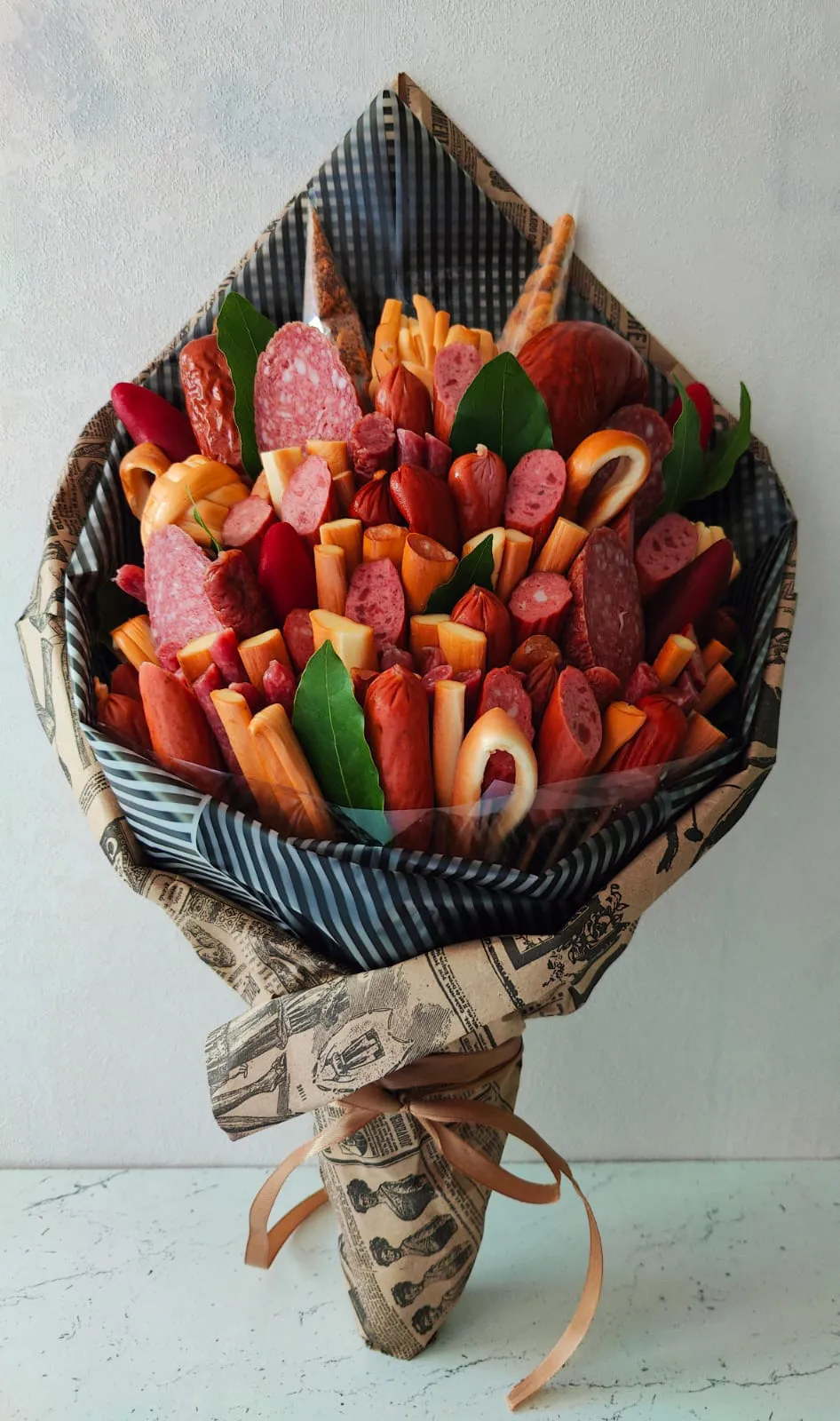 Съедобный букет из колбасок — это кулинарный шедевр, который несет в себе не только гастрономическое удовольствие, но и эстетическую привлекательность.